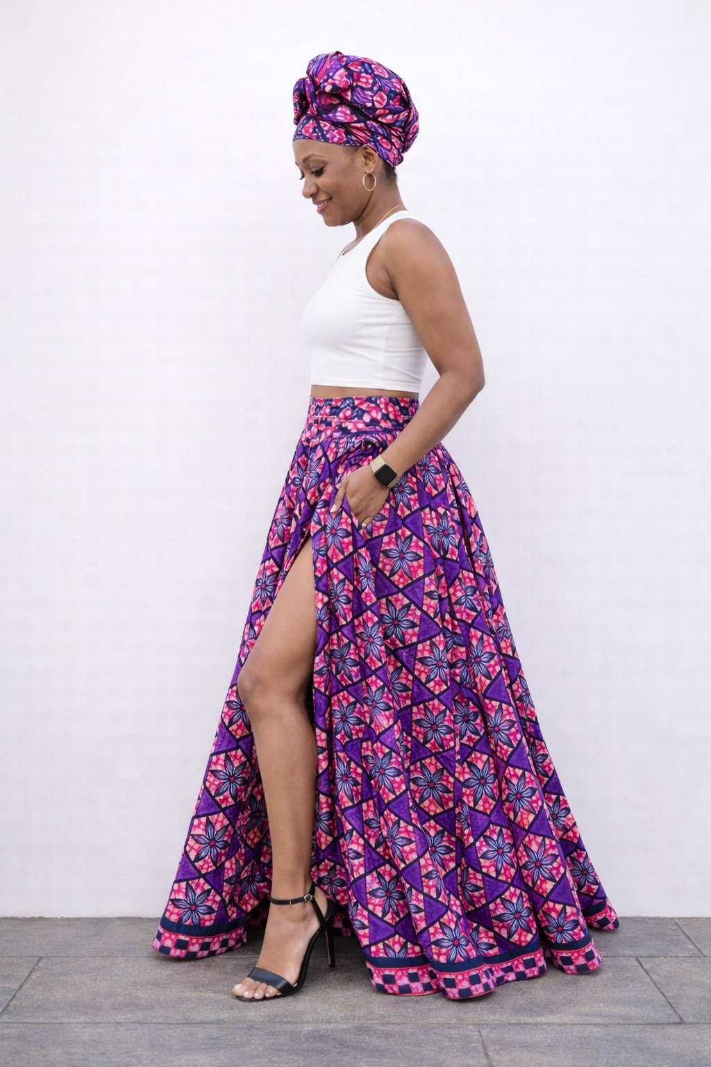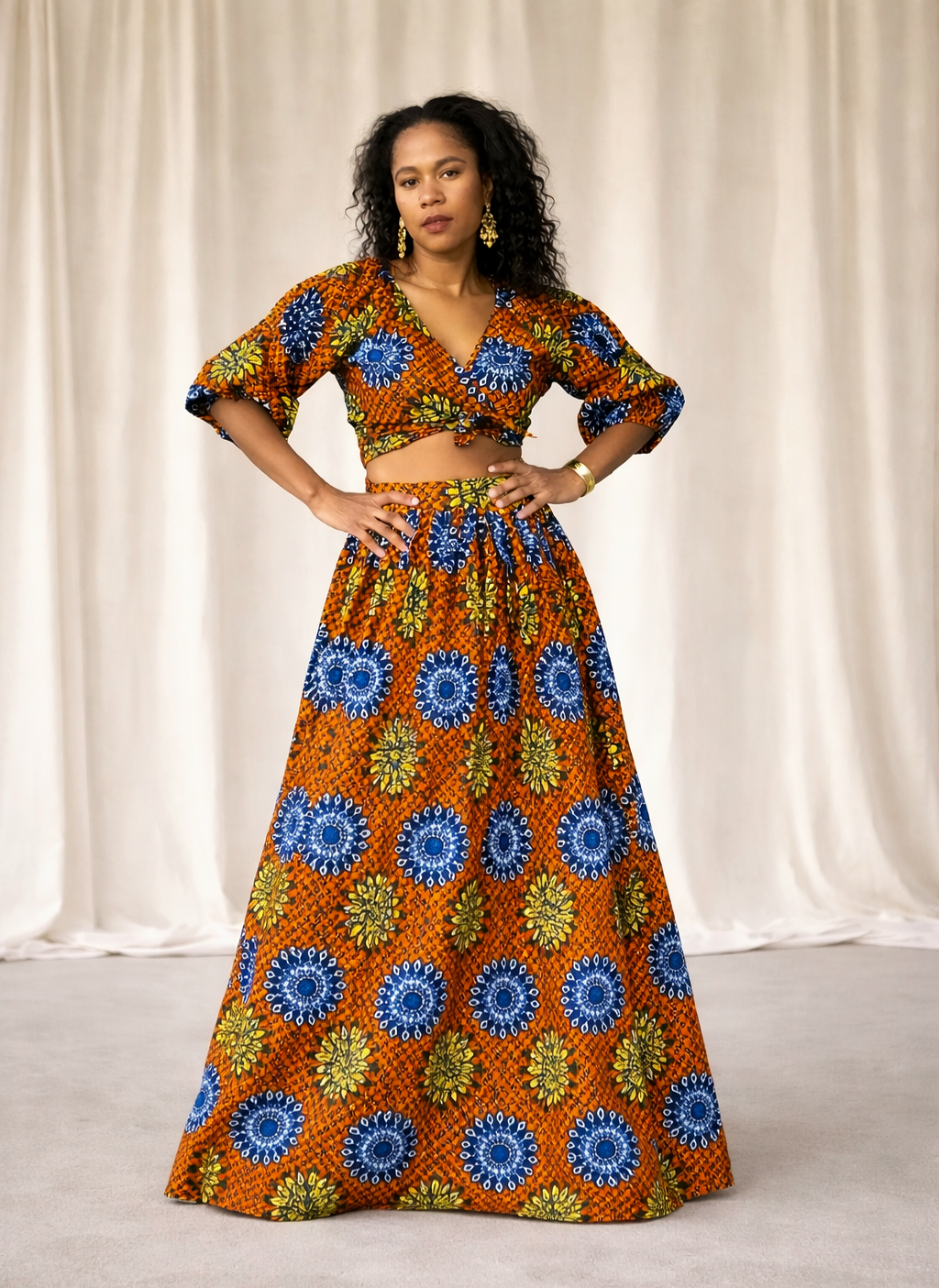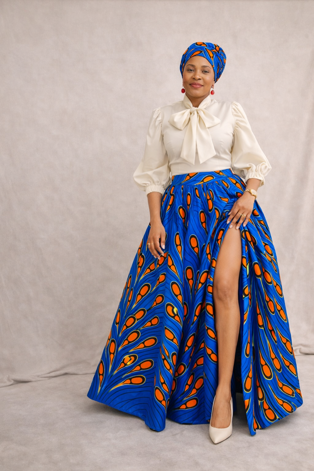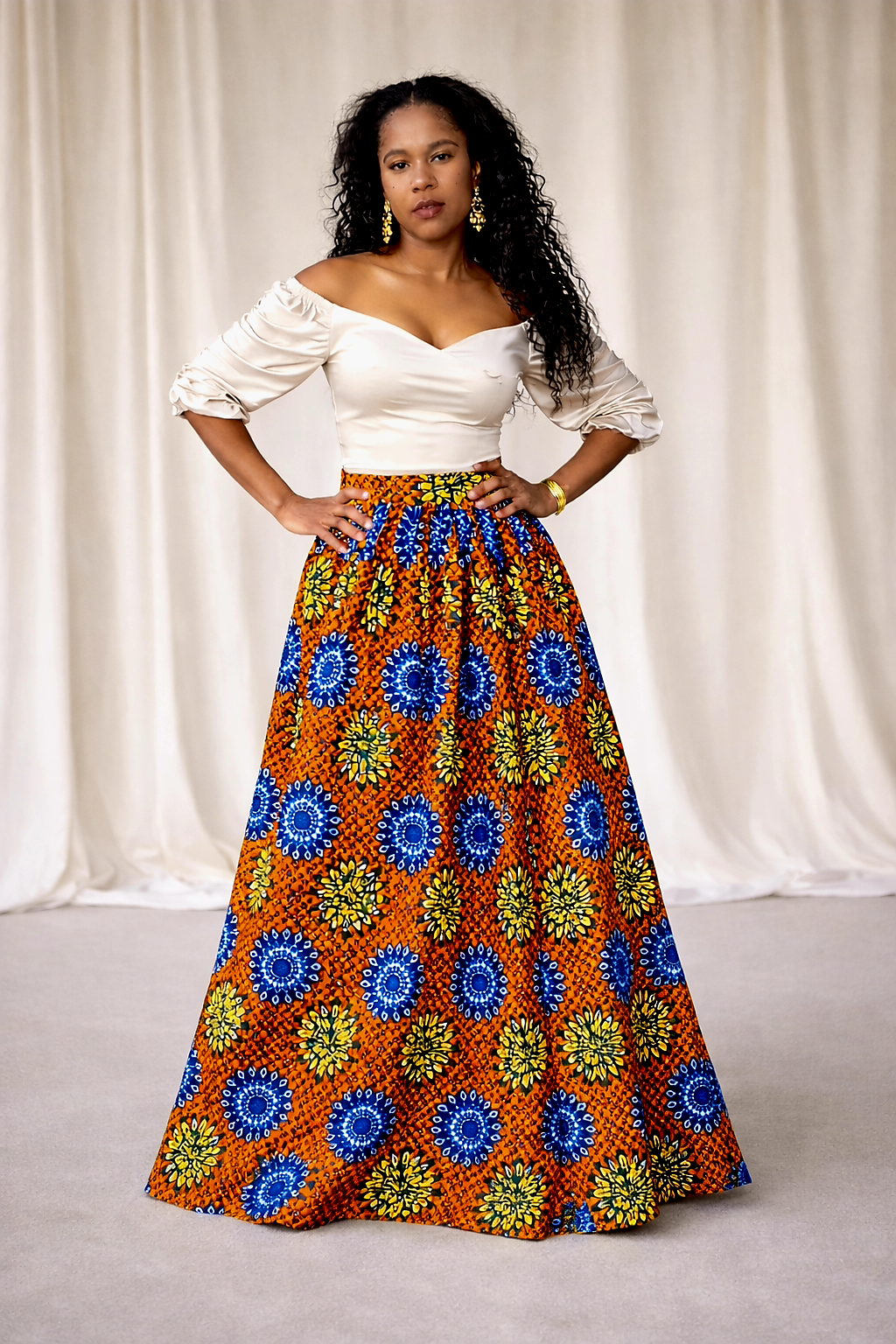 The Rubane Collection features bold African print maxi skirts designed to celebrate colour, heritage, and modern elegance. With a flattering high-waist silhouette and flowing structure, these skirts make a striking statement for any occasion.