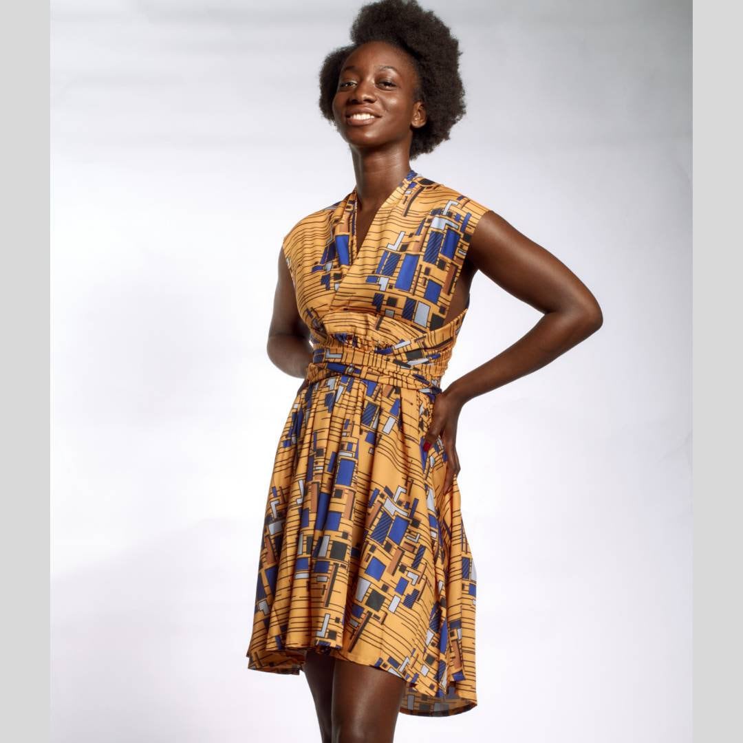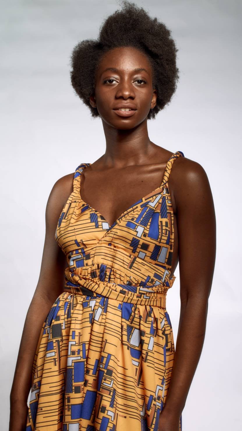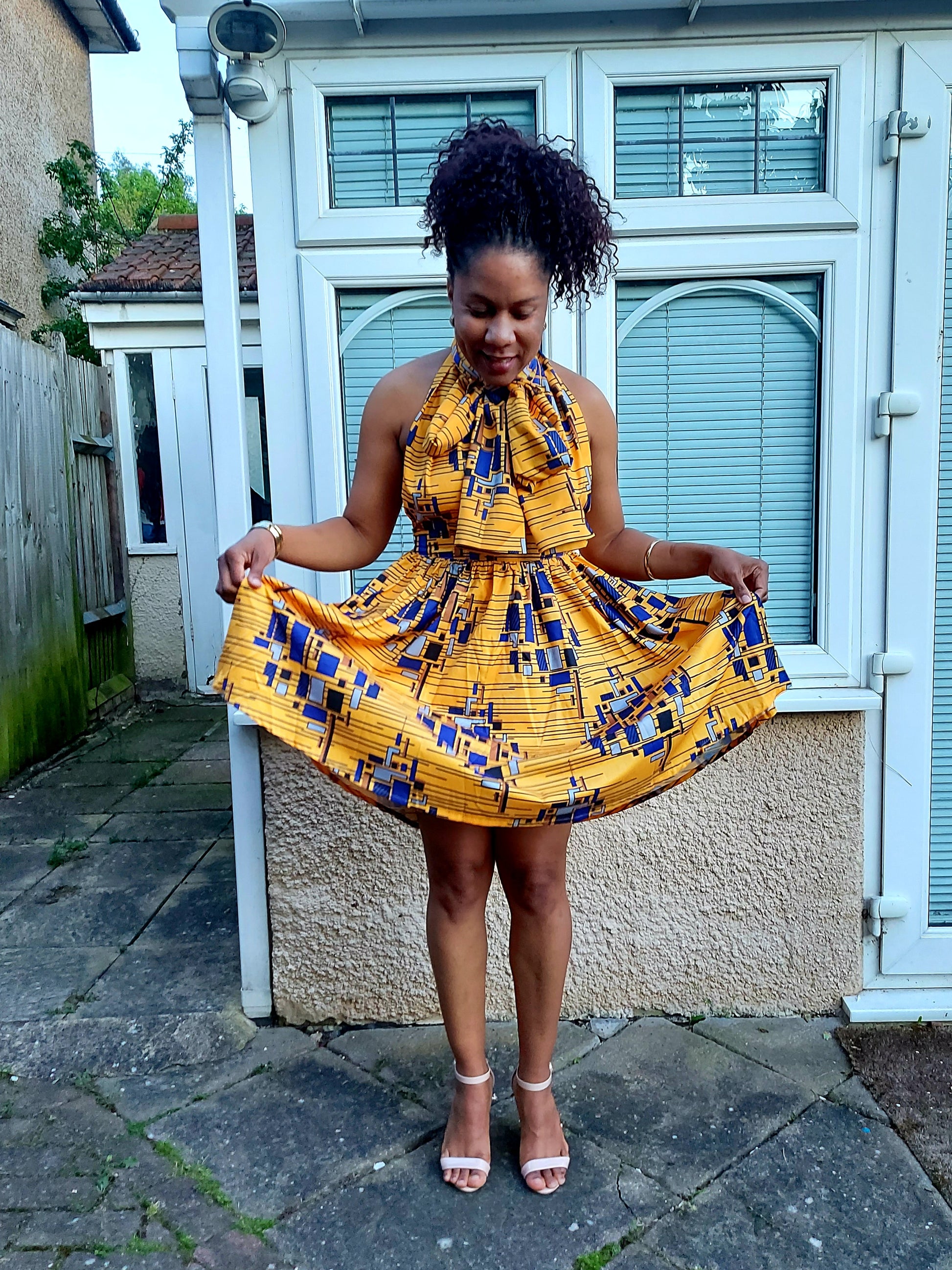 Yellow African Print Dress: Sleeveless Polyester Wax Dress