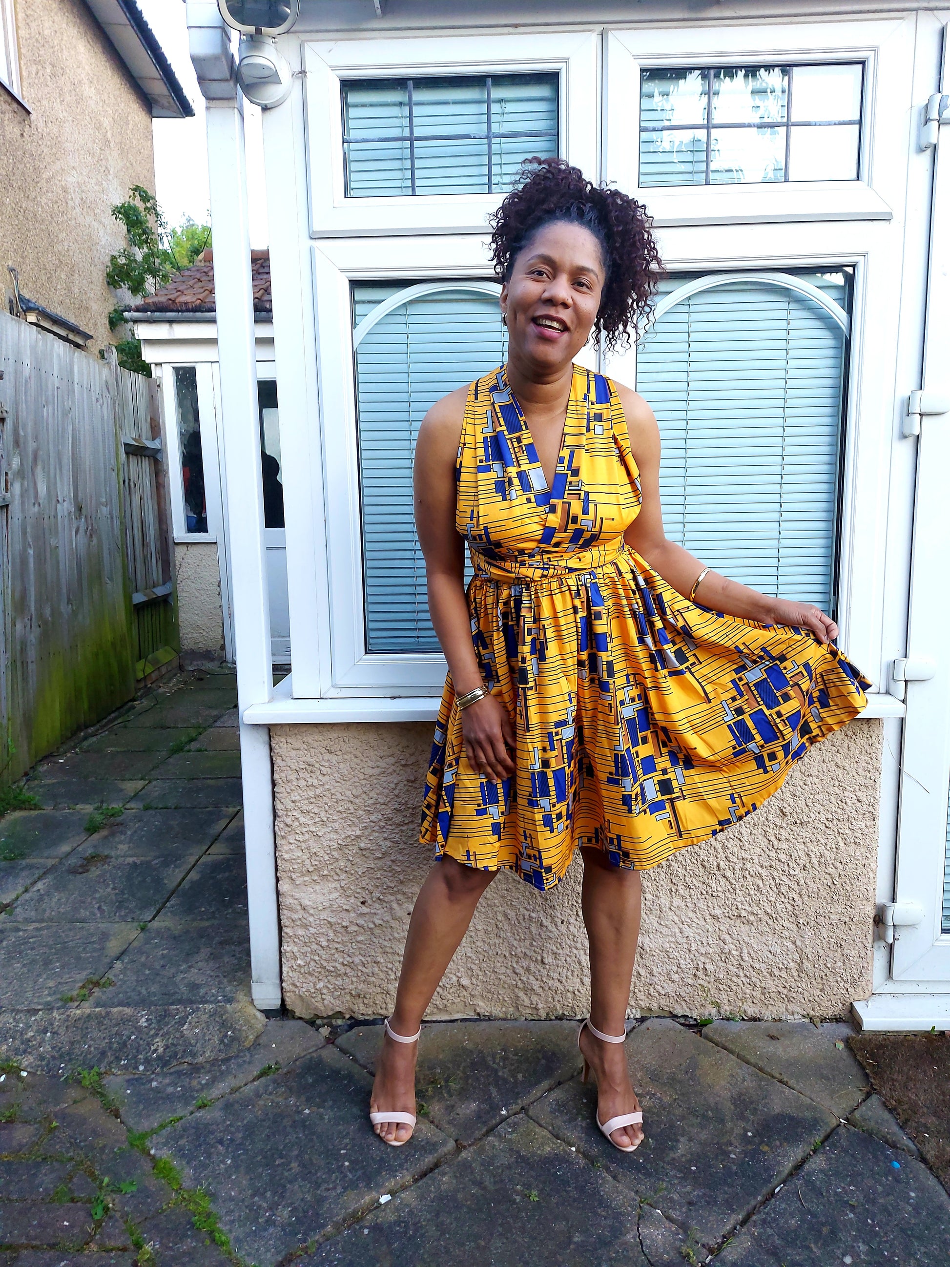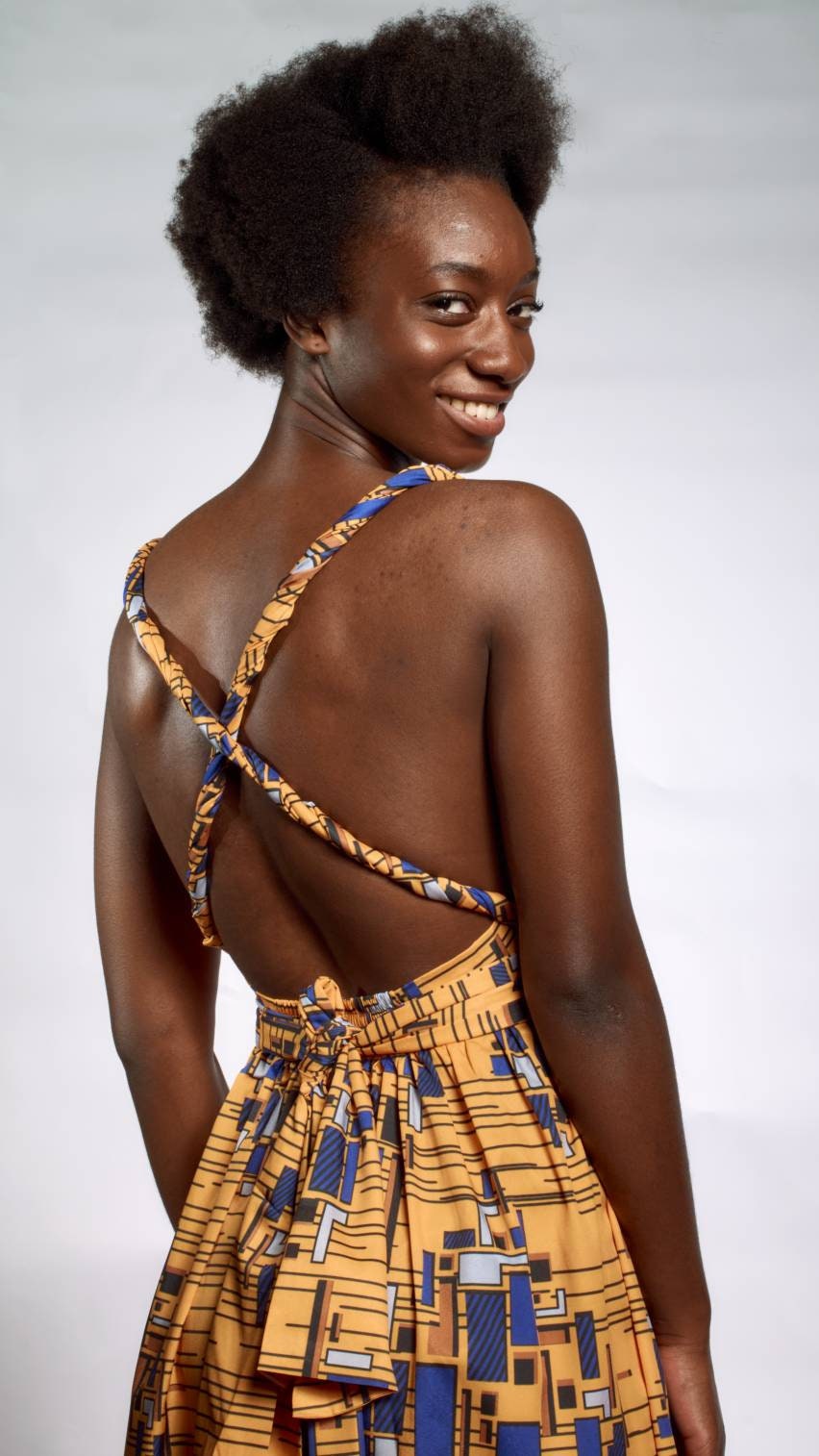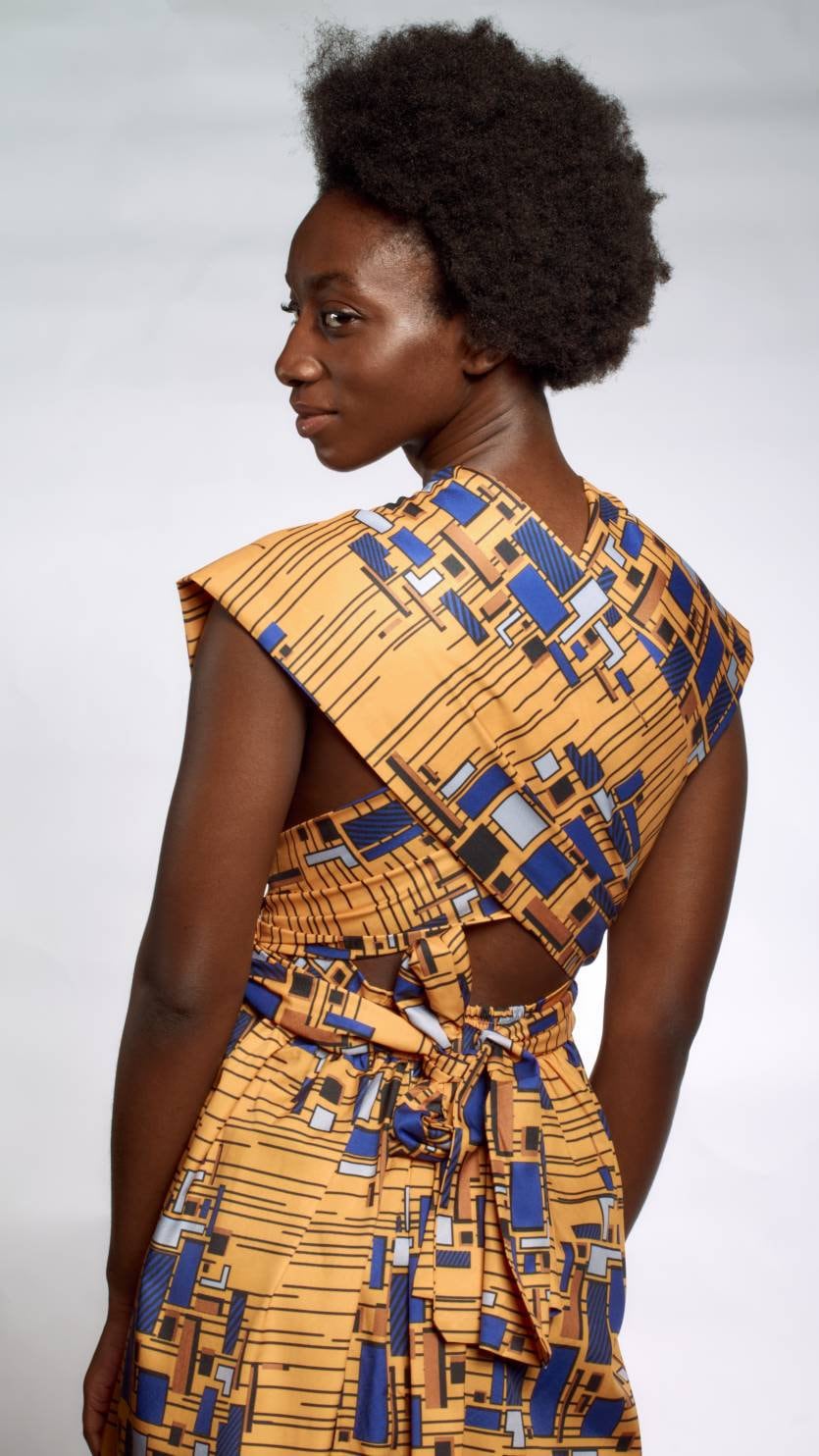 Yellow African Print Dress: Sleeveless Polyester Wax Dress