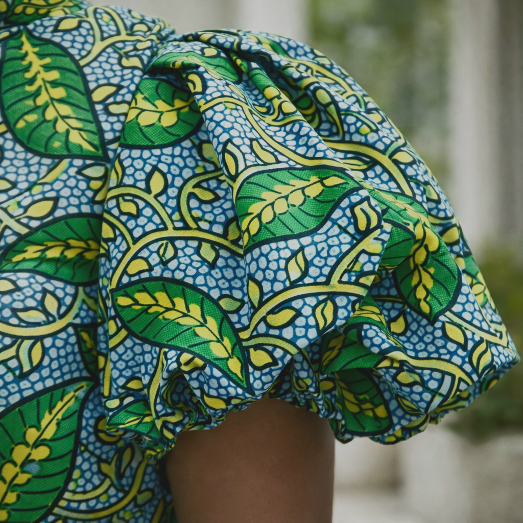 Elara African Print Midi Dress with Puff Sleeves | Ankara Belted Dress | MADE INSIDE