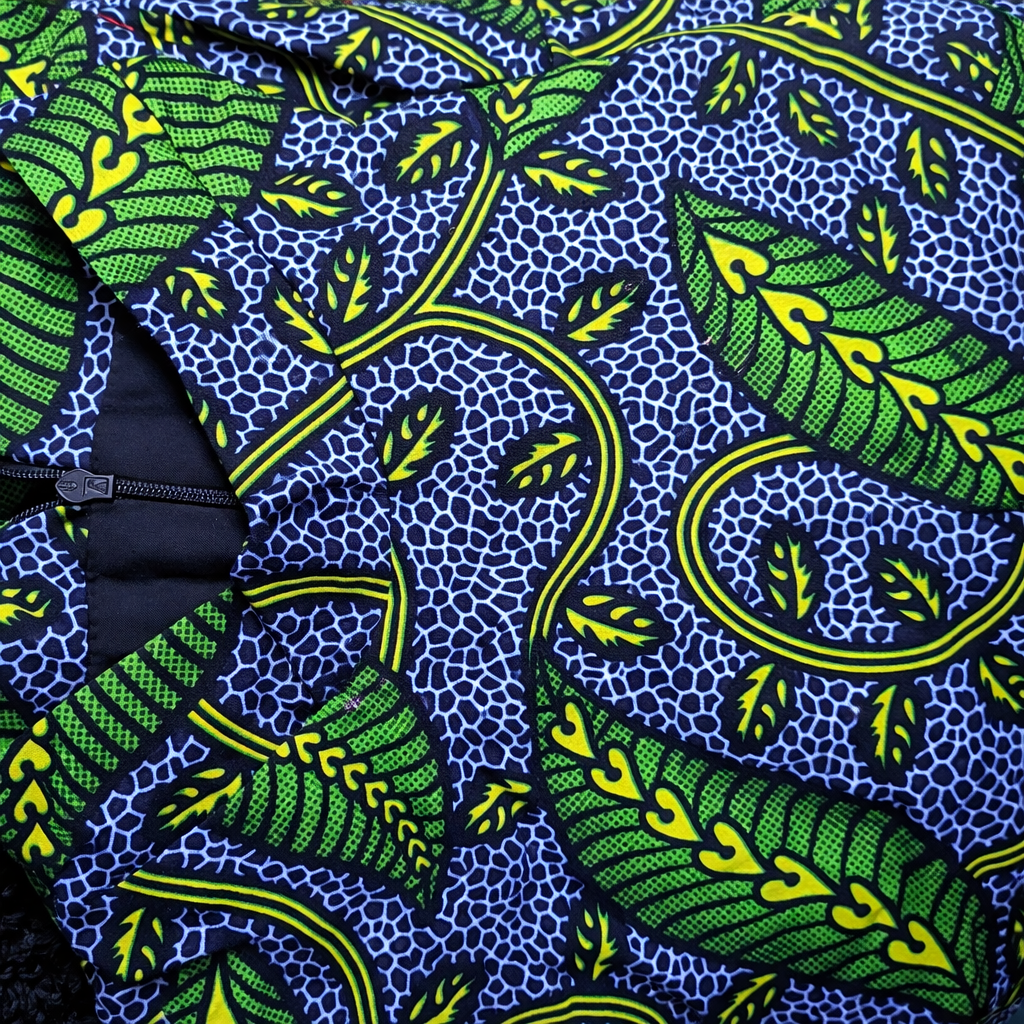 Available in green and purple prints, this statement dress celebrates African craftsmanship while offering modern elegance.