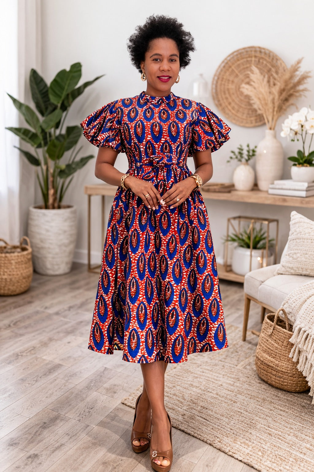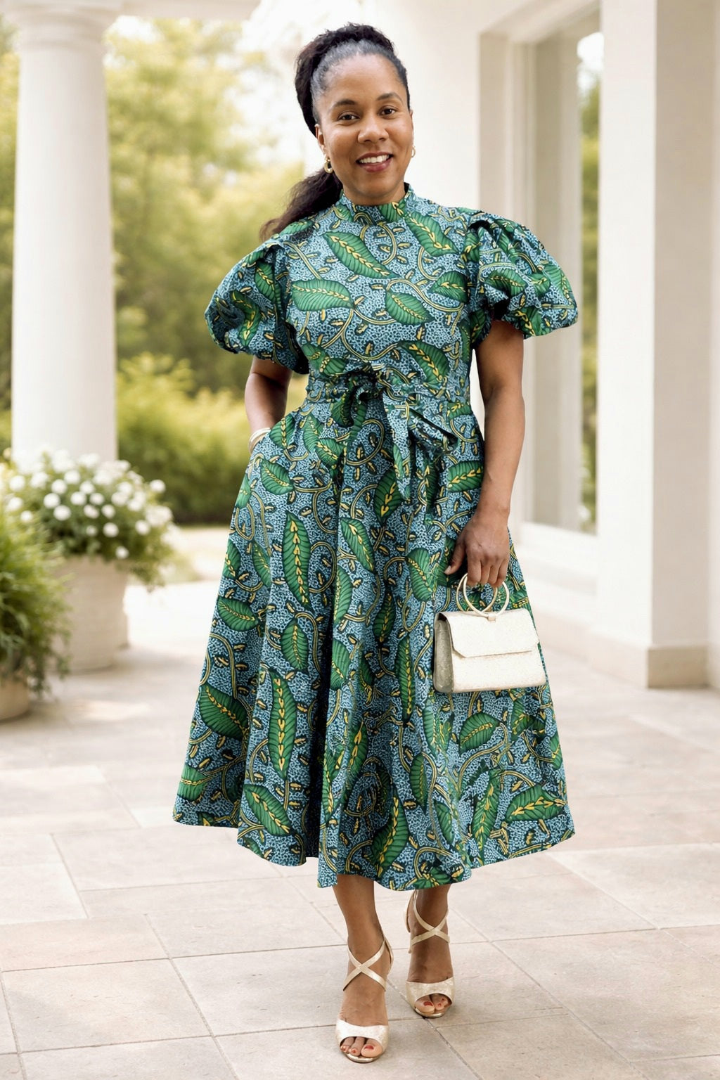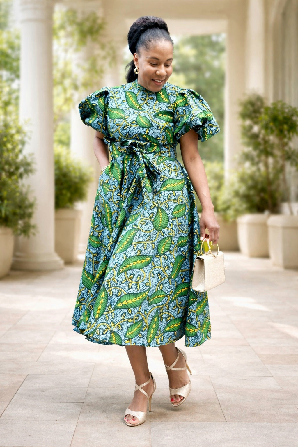 Lily Puff Sleeves Dress will add a very elegant touch to your new collection. The dress have pockets at both sides and gives a feminine finish.